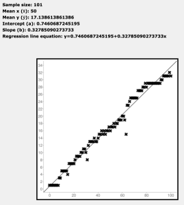 If we graph that data set we’ll notice it almost follows a linear trend. Let’s do that and produce a linear regression: