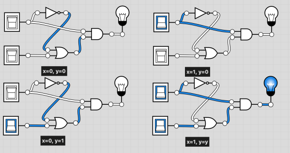 For example, consider the expression . This expression uses three logic gates: one “not” gate (for